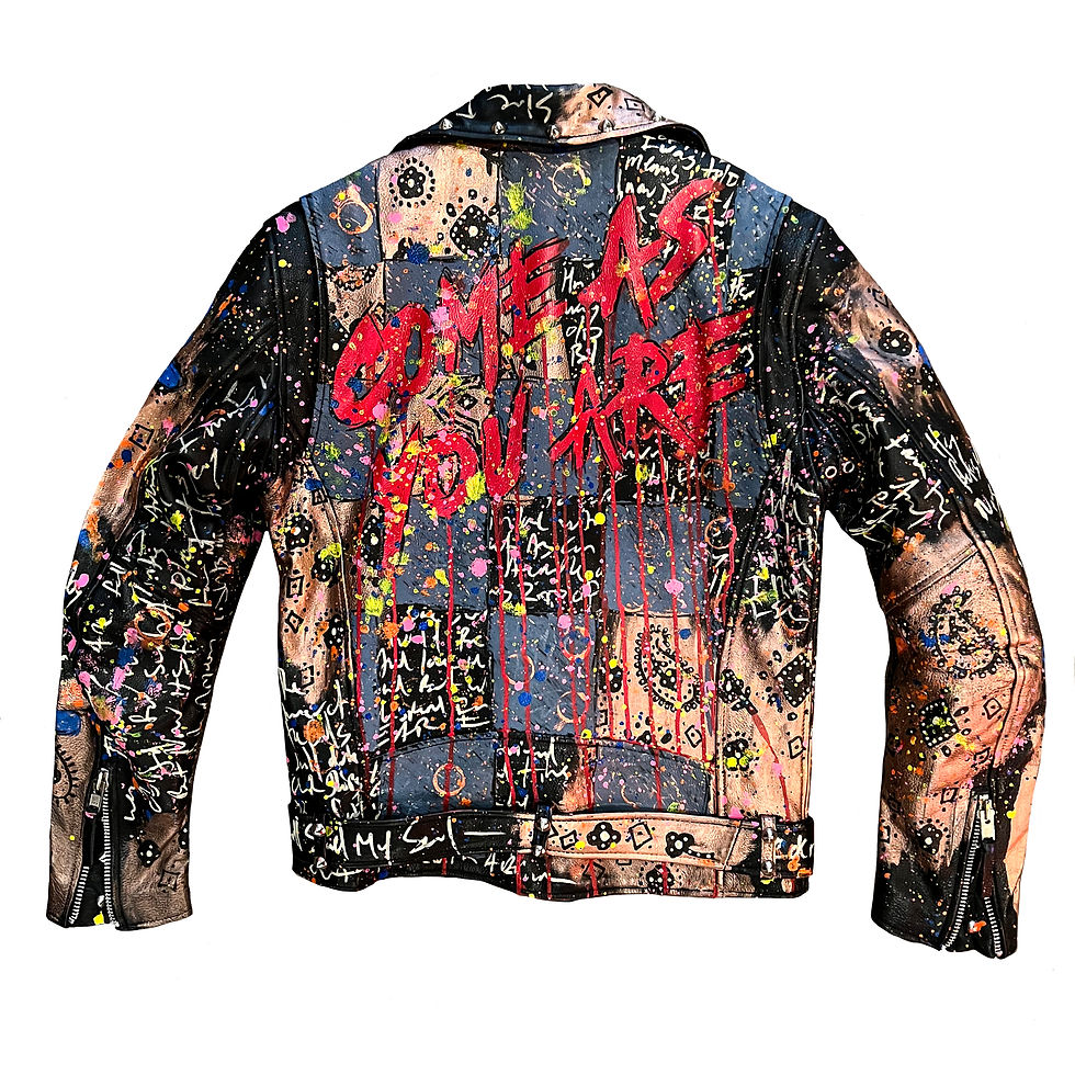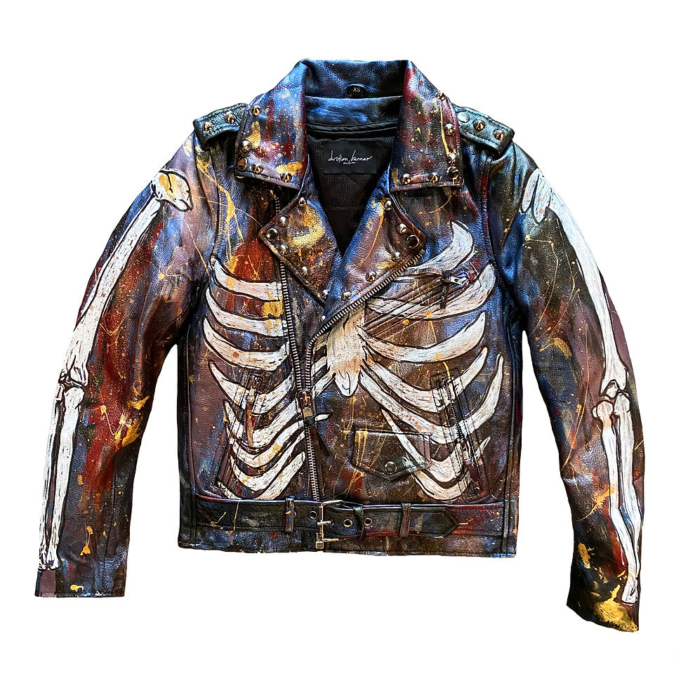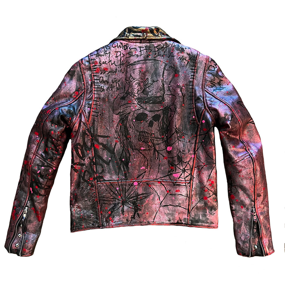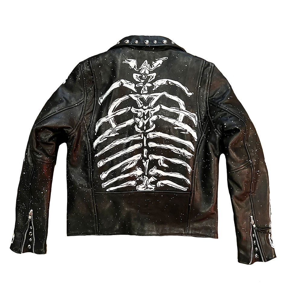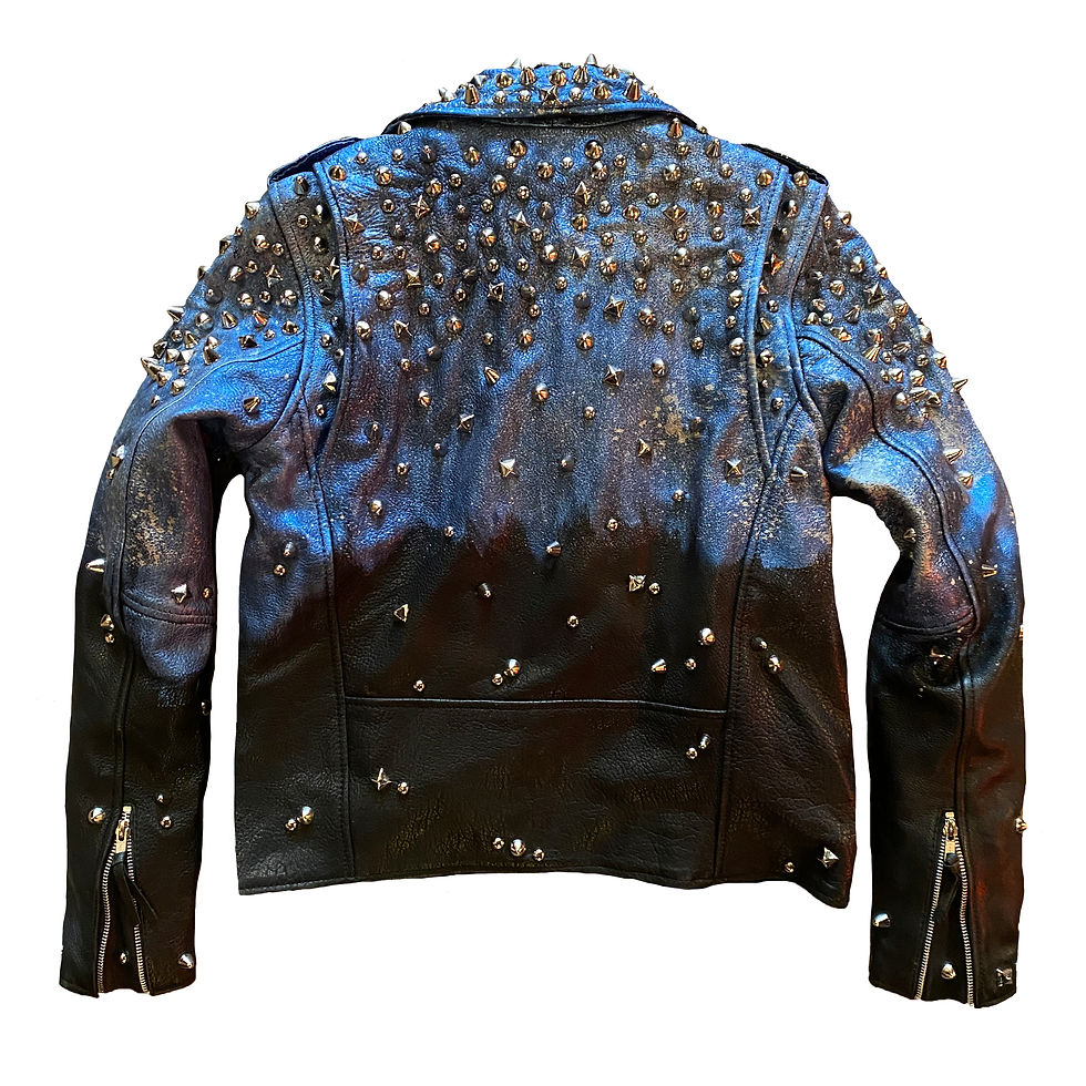Browse our curated collection of past designs to find inspiration for your custom one-of-a-kind leather jacket. All of our jackets are handcrafted and made to order. Upon purchase, we will be in contact to discuss customizations, including colors, studding, imagery and words. Together we'll create a statement piece that's undeniably you.